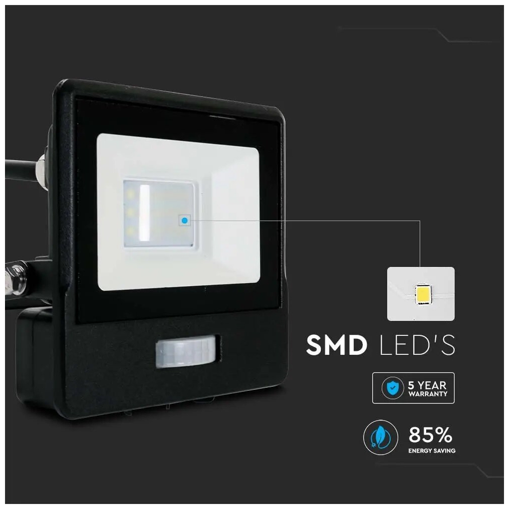 V-TAC Προβολέας LED Samsung chip 10W Ψυχρό λευκό 4000K Μαύρο σώμα με ανιχνευτή 1m καλώδιο 20282 V-TAC Προβολέας LED Samsung ch...