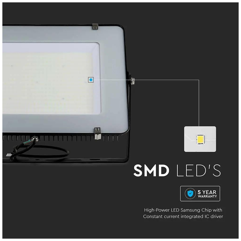 Προβολέας LED SMD Slim 300W 100° 34500lm IP65 Samsung Chip G2 High Lumen Μαύρο Σώμα Ψυχρό Λευκό 21792 V-TAC