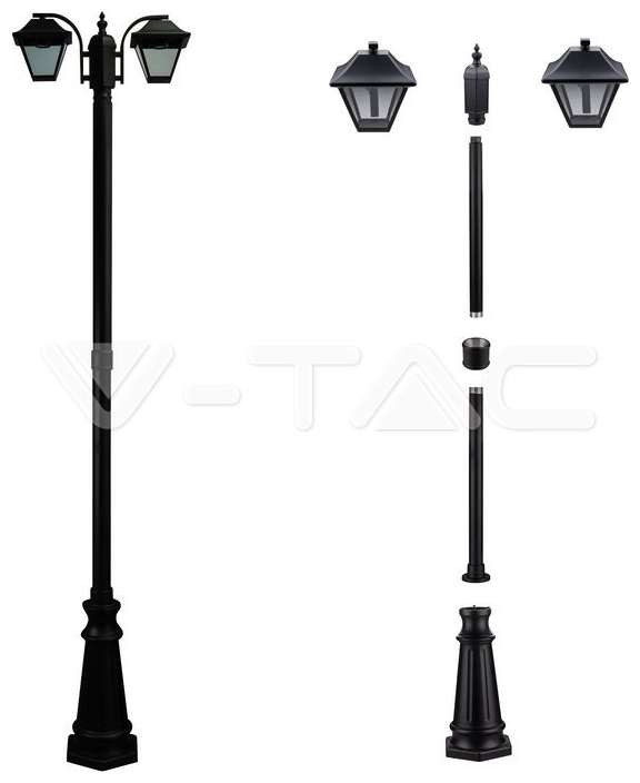 V-TAC Στύλος με Δύο Φαναράκια Κήπου 228cm με ντουι 2χΕ27 IP44