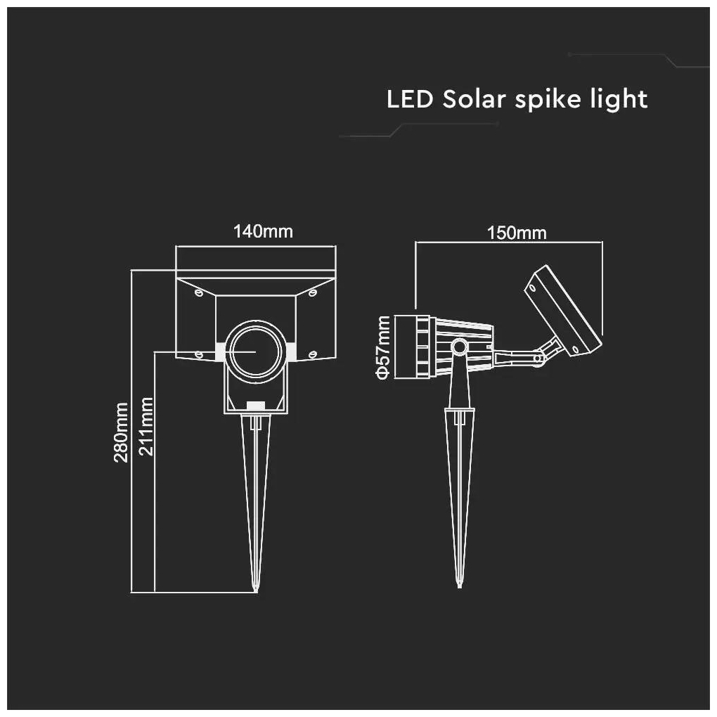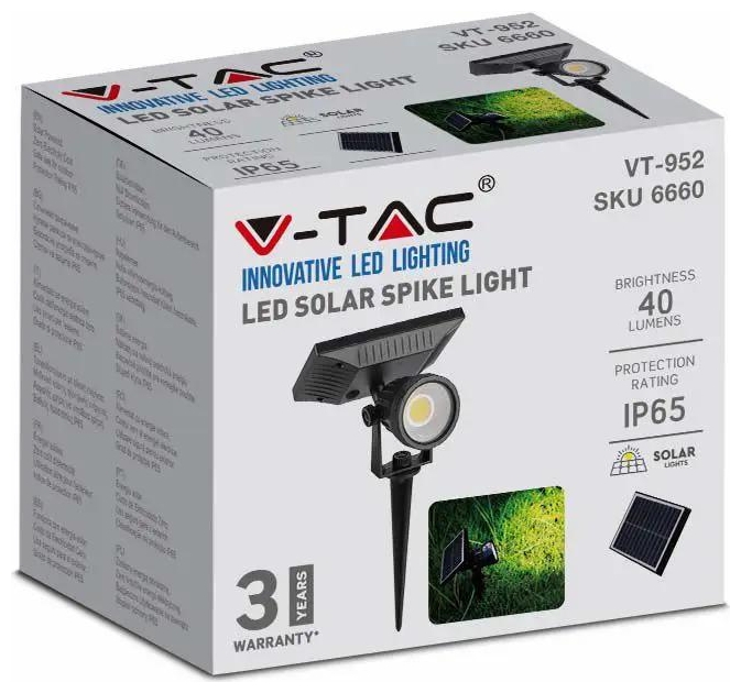 Ηλιακό Φωτιστικό Κήπου LED COB 2W με Καρφί Αδιάβροχο IP65 40lm Ψυχρό Λευκό Μαύρο Σώμα 6662 V-TAC