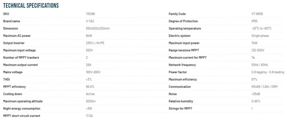 V-TAC Υβριδικό Inverter On/Off Μονοφασικός IP65 115086