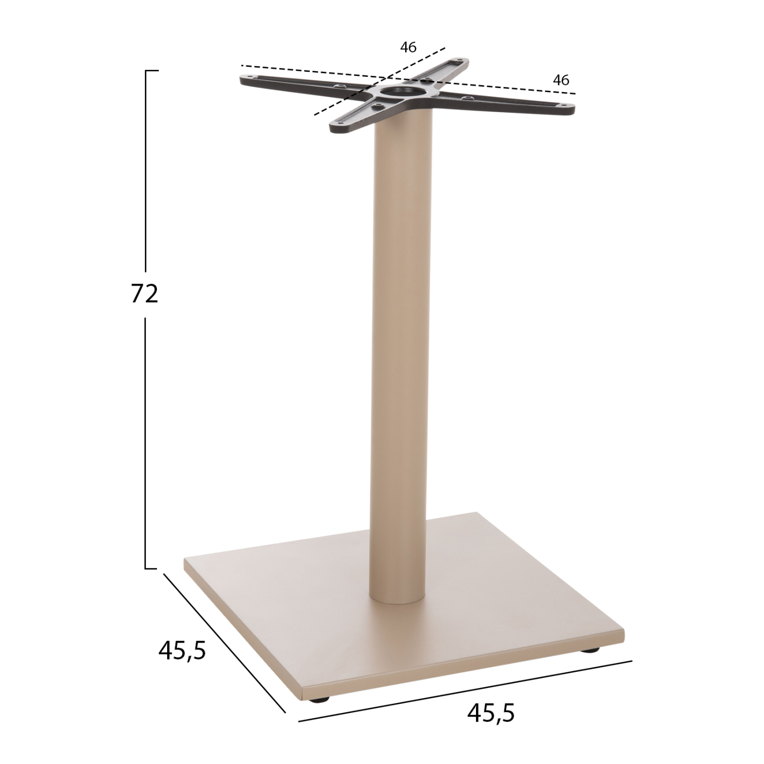Η ΗΜ475.25 είναι βάση για τραπέζι σε ΚΑΠΟΥΤΣΙΝΟ χρώμα. Αυτή η βάση είναι αλουμινίου με μία κολώνα η οποία στηρίζεται σε μια βαριά επίπεδη μεταλλική επιφάνεια. Το χαρακτηριστικό που κάνει αυτή την βάση ιδιαίτερα πρακτική είναι ότι το καπάκι που θα διαλέξετε στηρίζεται σε «σταυρό», με αποτέλεσμα να μπορεί να δεχθεί τόσο στρογγυλά καπάκια, όσο και τετράγωνα. Επίσης, στο κάτω μέρος της διαθέτει ρυθμιστές ύψους (ρεγουλατόρους). Ιδανική πρόταση για συνδυασμό με επιφάνειες σχεδόν κάθε είδους, όπως βερσαλίτες, HPL, MDF, κτλ.