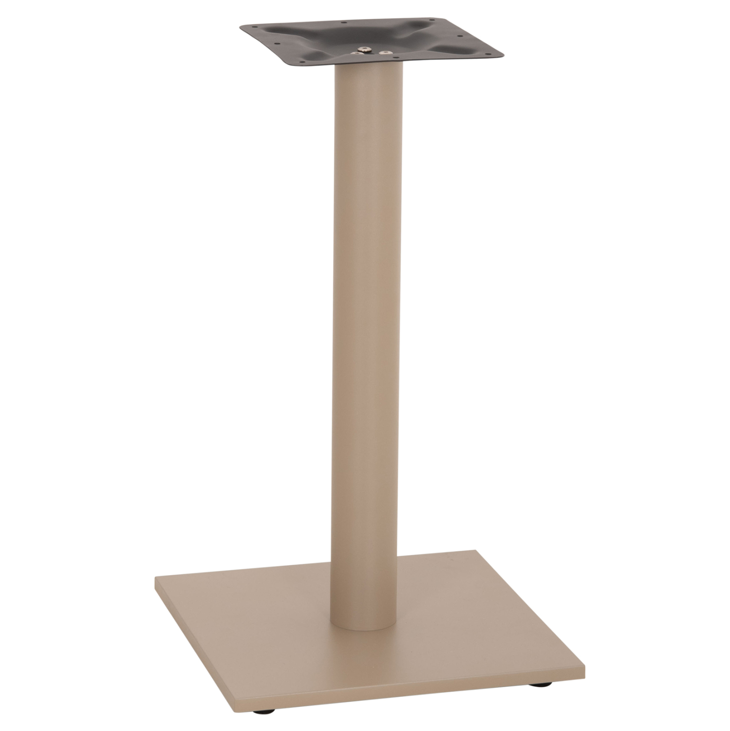 Η ΗΜ421.25 είναι βάση για τραπέζι σε ΚΑΠΟΥΤΣΙΝΟ ΜΑΤ χρώμα. Διαθέτει μεταλλική κολώνα η οποία στηρίζεται σε μια βαριά τετράγωνη μεταλλική βάση για χαμηλό κέντρο βάρους. Το καπάκι που θα διαλέξετε στηρίζεται σε μια μεταλλική τετράγωνη επιφάνεια, με αποτέλεσμα να μπορεί να δεχθεί τόσο στρογγυλά καπάκια, όσο και τετράγωνα. Επίσης, στο κάτω μέρος της διαθέτει ρυθμιστές ύψους (ρεγουλατόρους). Ιδανική πρόταση για συνδυασμό με επιφάνειες σχεδόν κάθε είδους, όπως βερσαλίτες, HPL, MDF, κτλ.