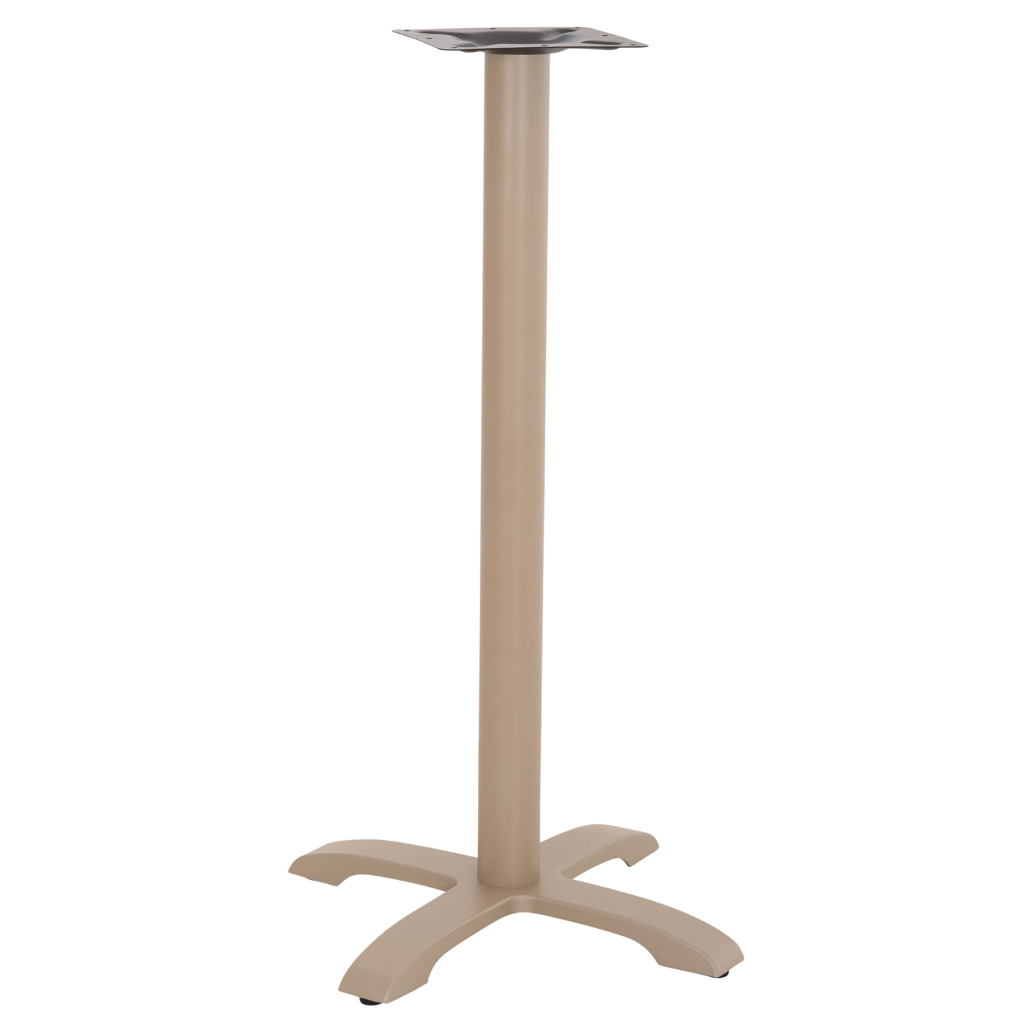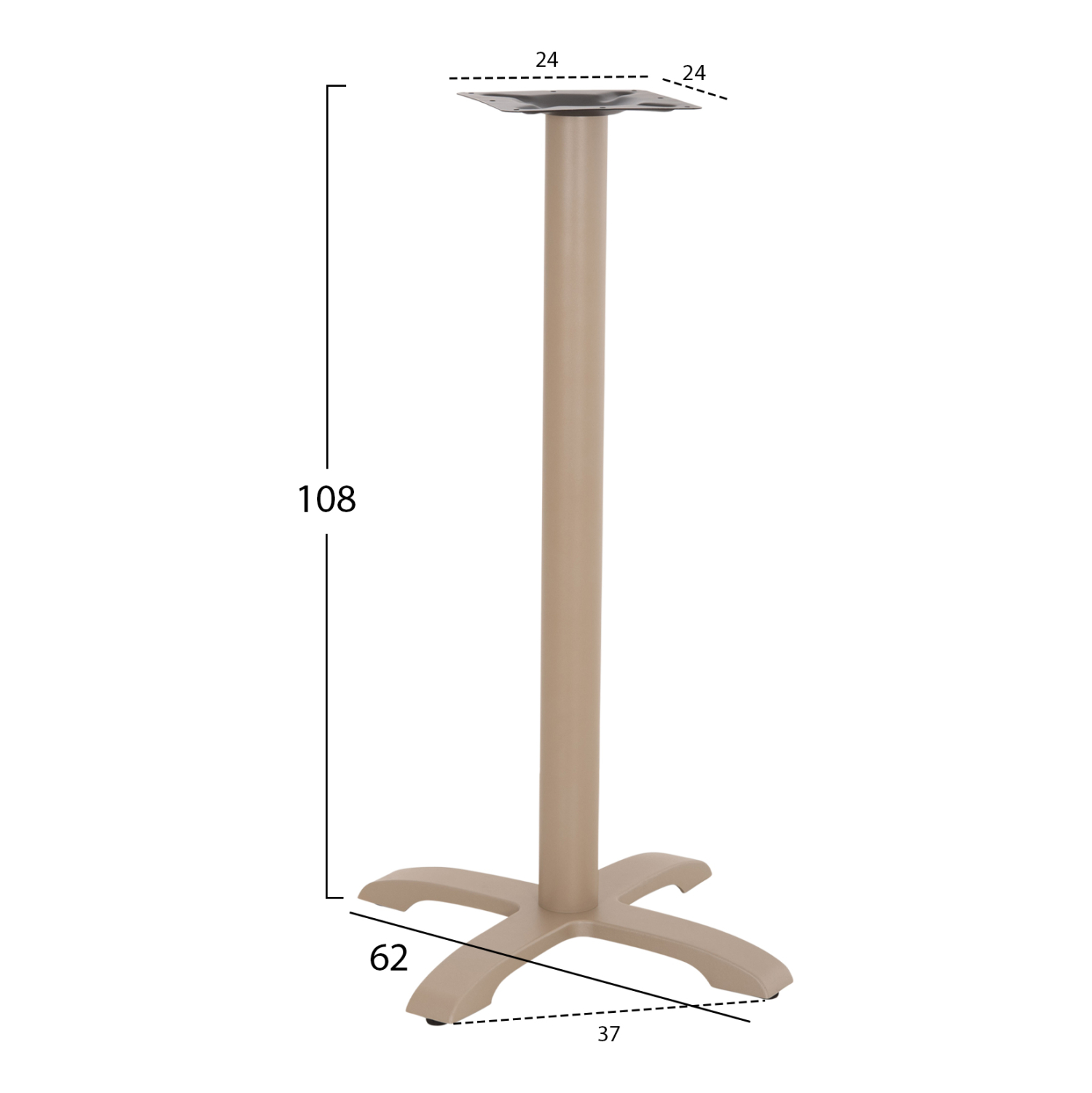 Η ΗΜ417.25 είναι βάση για τραπέζι bar σε ΚΑΠΟΥΤΣΙΝΟ ΜΑΤ χρώμα. Διαθέτει μεταλλική κολώνα η οποία στηρίζεται σε μια βαριά μαντεμένια 4-νυχη μεταλλική βάση. Το καπάκι που θα διαλέξετε στηρίζεται σε μια μεταλλική τετράγωνη επιφάνεια, με αποτέλεσμα να μπορεί να δεχθεί τόσο στρογγυλά καπάκια, όσο και τετράγωνα. Επίσης, στο κάτω μέρος της διαθέτει ρυθμιστές ύψους (ρεγουλατόρους). Ιδανική πρόταση για συνδυασμό με επιφάνειες σχεδόν κάθε είδους, όπως βερσαλίτες, HPL, MDF, κτλ.