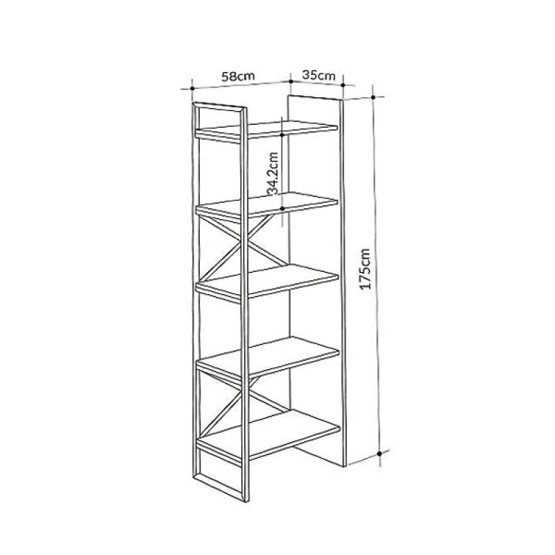 Βιβλιοθήκη Detroit Megapap χρώμα sapphire oak – silky black 58×35,2×175εκ.