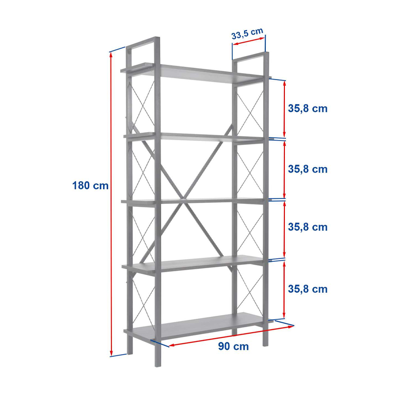 Βιβλιοθήκη Elysian Megapap χρώμα black wood 90×33,5×180εκ.