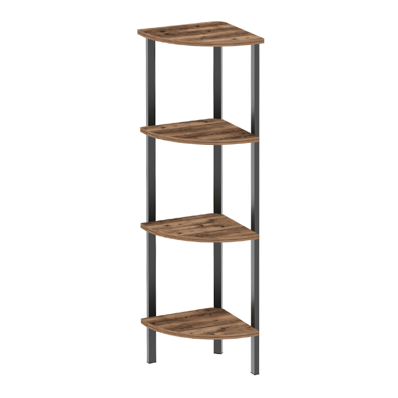 Βιβλιοθήκη γωνιακή Lela Megapap χρώμα μαύρο – καπνιστή καρυδιά 34x34x125εκ.