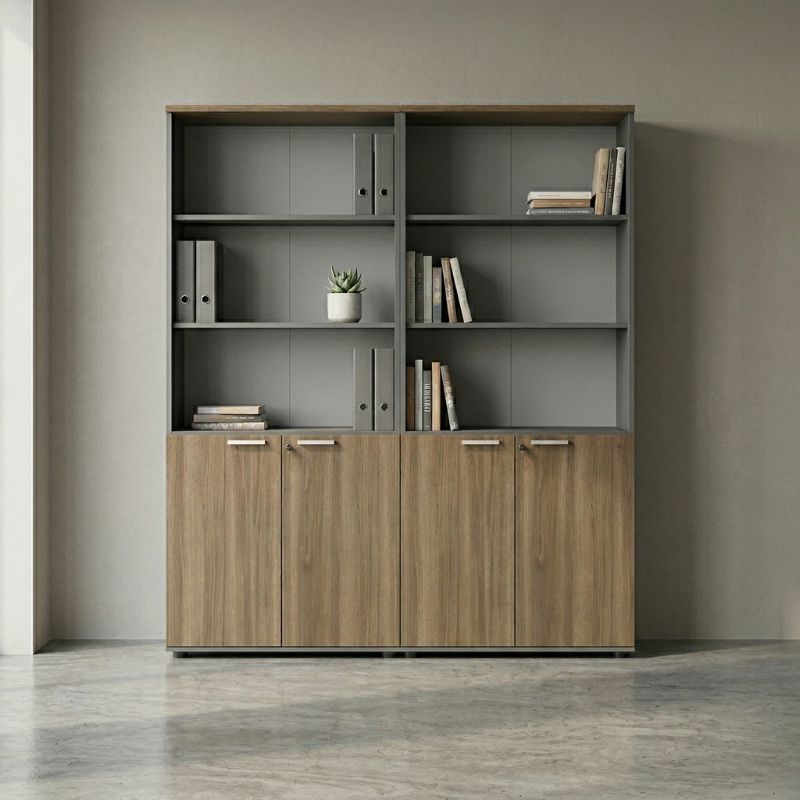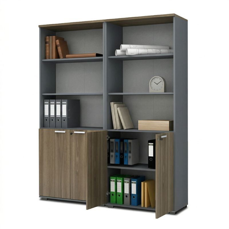 Βιβλιοθήκη γραφείου με κλειδαριά επαγγελματική Venturo Megapap χρώμα ανθρακί - καρυδί 160x40x200εκ. Βιβλιοθήκη γραφείου με κλειδαρ...