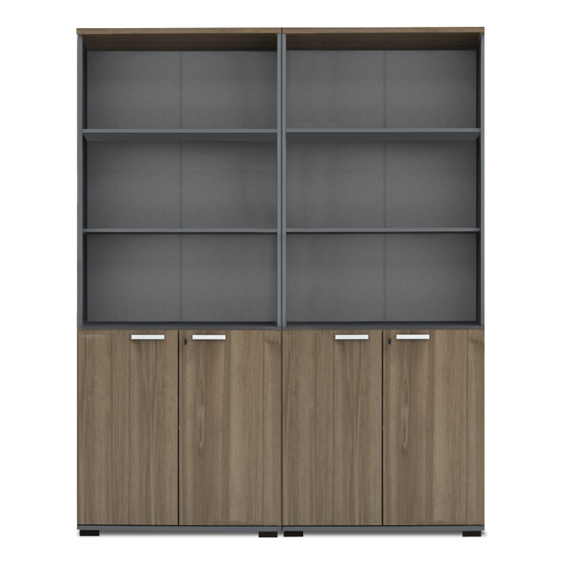 Βιβλιοθήκη γραφείου με κλειδαριά επαγγελματική Venturo Megapap χρώμα ανθρακί – καρυδί 160x40x200εκ.
