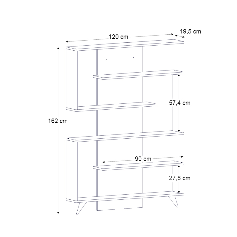 Βιβλιοθήκη μελαμίνης Rain Megapap χρώμα λευκό – καρυδί 120×19,5×162εκ.