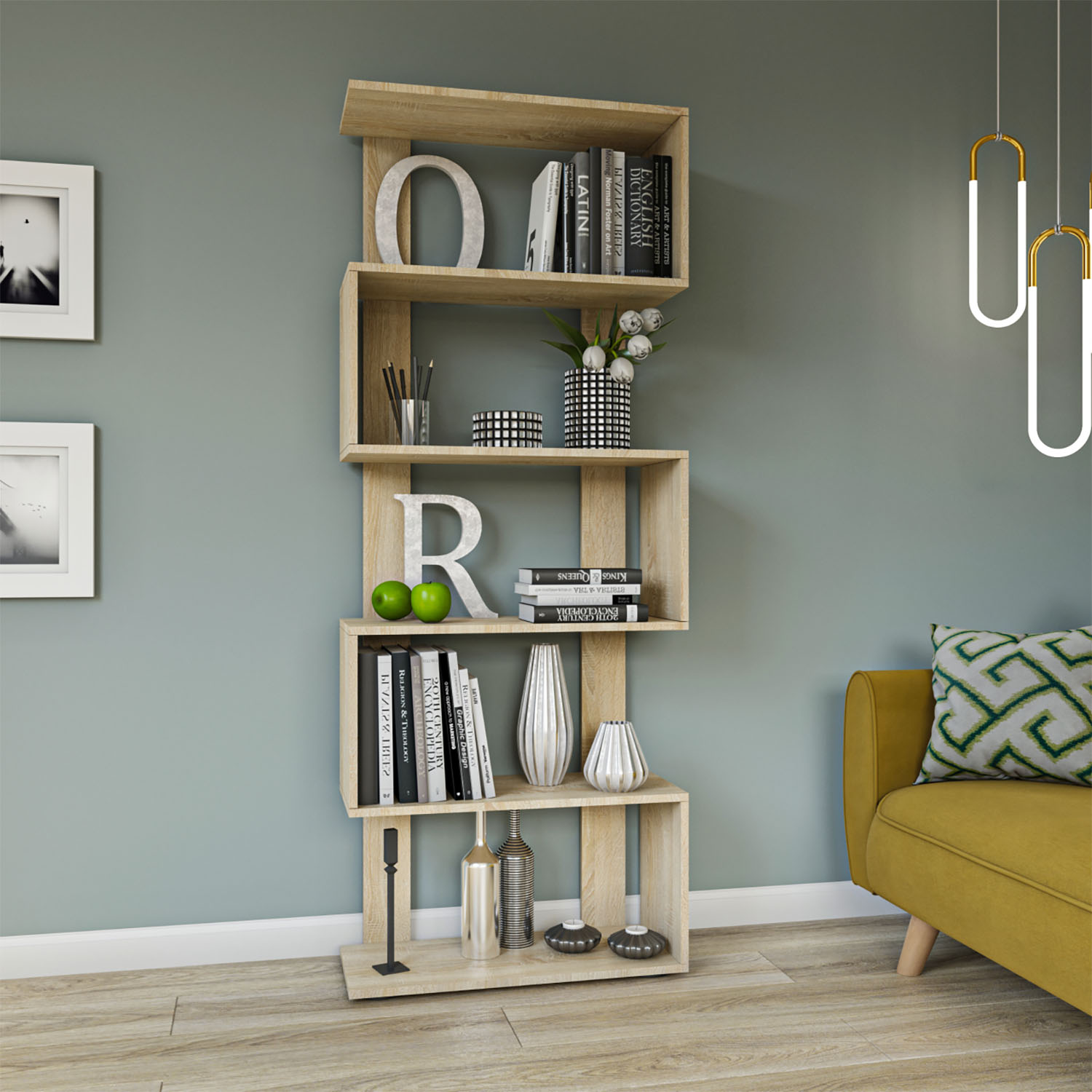 Το έπιπλο διαθέτει ράφια για τοποθέτηση βιβλίων και διακοσμητiκών, σε ιδιαίτερο σχεδιασμό.