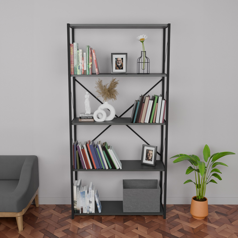 Βιβλιοθήκη Tikilmo pakoworld ανθρακί μελαμίνης-μαύρο μέταλλο 88x34x180εκ