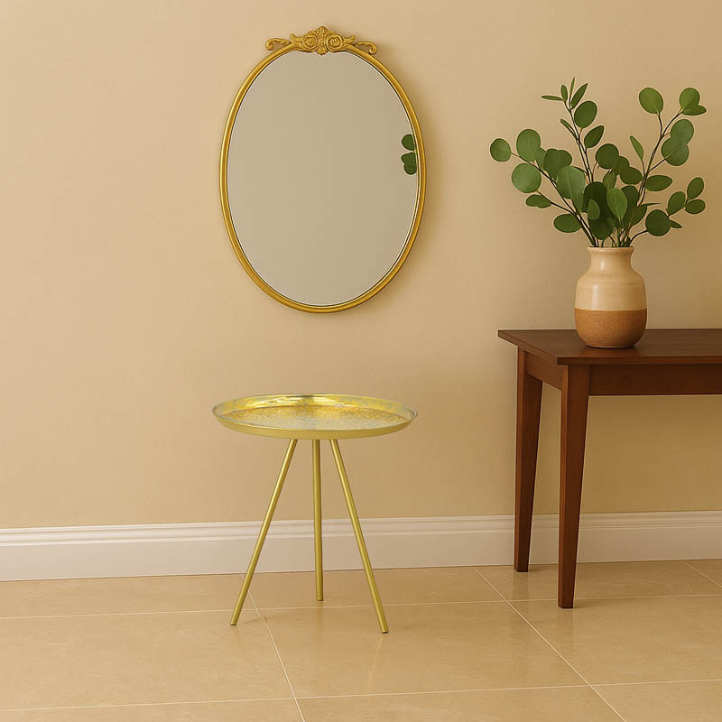 Βοηθητικό τραπέζι Jacksie Inart γκρι-χρυσό μέταλλο Φ41×43.5εκ