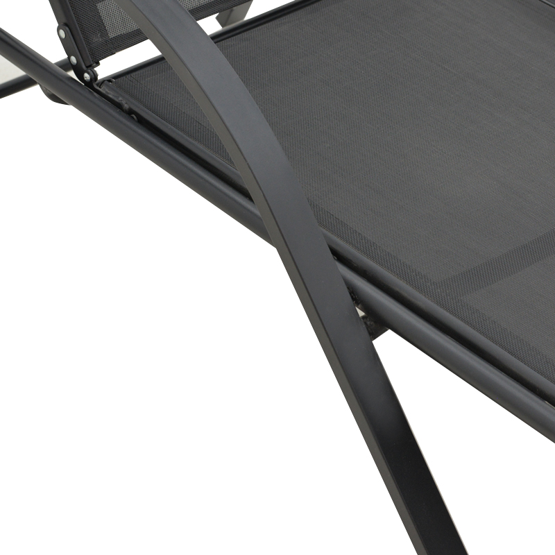 •  Επένδυση υφάσματος textinene 2×1 530gr ανθρακί χρώματος. Το textilene είναι ύφασμα μεγάλης αντοχής στην ηλιακή ακτινοβολία UV και την υγρασία, ενώ παράλληλα αφήνει το δέρμα να “αναπνέει” δημιουργώντας έτσι άνεση στην έδραση.
